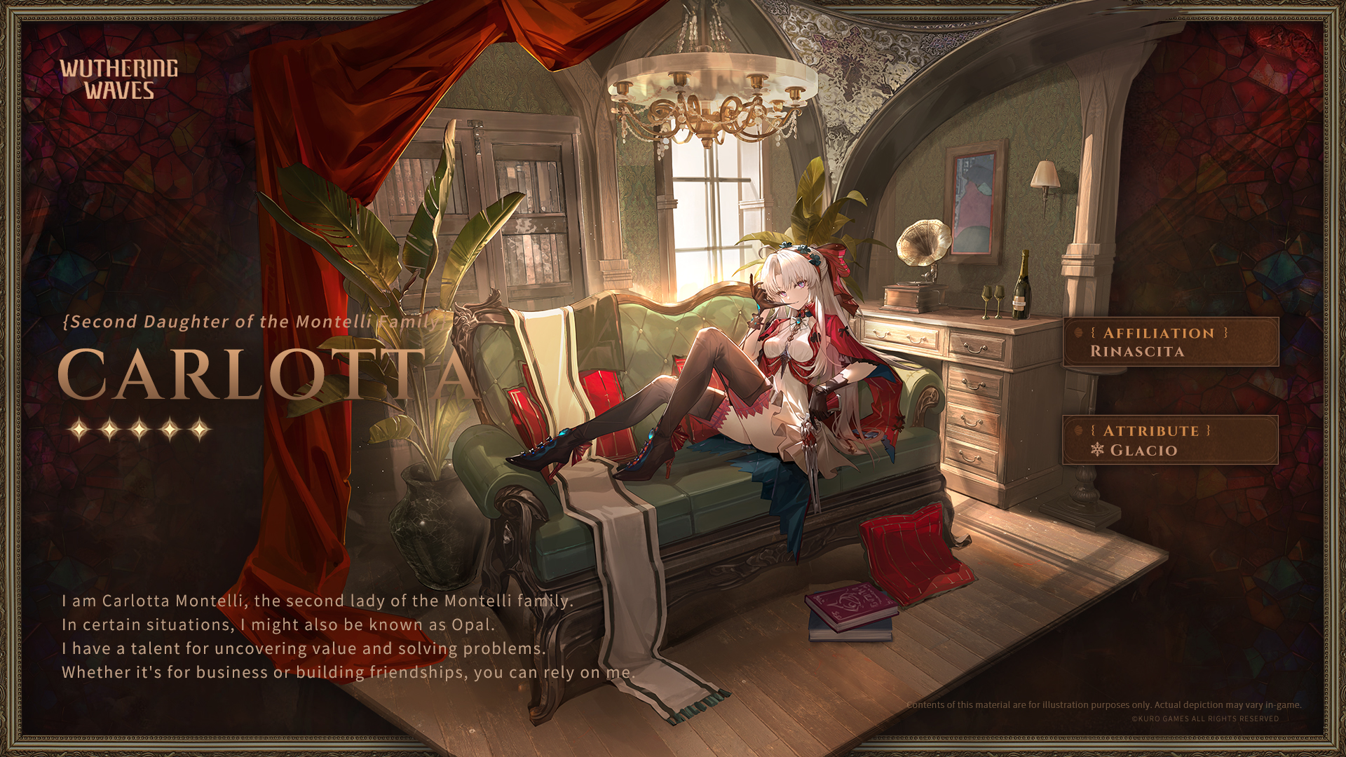 I am Carlotta Montelli, the second lady of the Montelli family. In certain situations, I might also be known as Opal. I have a talent for uncovering value and solving problems. Whether it's for business or building friendships, you can rely on me. WutheringWaves.gg Articles: 1460 Previous Post Wuthering Waves Update Preview | Version 2.0 "All Silent Souls Can Sing" to be released on Jan 2nd, 2025 (UTC+8) Next Post Profile Reveal | Crystal Remorph — Carlotta More Articles Notice on the Upgrade and Maintenance of the [Reprise of Tides] Returnee EventDecember 4, 2025 Pusoy Go Download Sparks Dialogue Among GameZone PlayersDecember 2, 2025 Post-Lament Anthropocene: Comprehensive Mirror for Historians—Lahai-RoiNovember 30, 2025 [Tactical Simulacra: Off Tune] Featured Combat EventNovember 26, 2025 V2.8 Wuthering Waves Battle RushNovember 20, 2025 Wuthering Waves Fan Creation Event “To the City Set in Amber” is now live!November 20, 2025 Wuthering Waves Fan Creation Event Winners RevealNovember 20, 2025 Patch Notes for Version 2.8: To the City Set in AmberNovember 20, 2025
