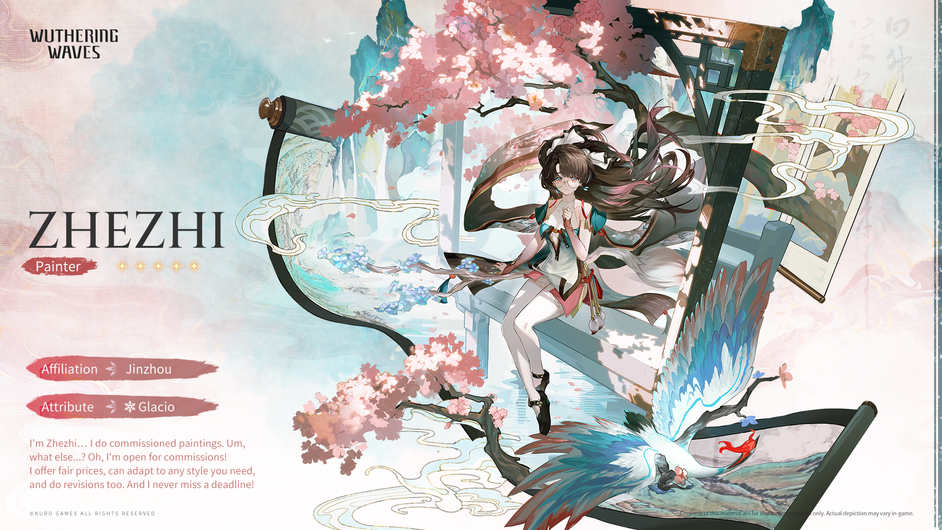 Loading Data>>> ✦Zhezhi✦ Zhezhi is a commissioned painter, quiet and shy with a dedication to her craft. She's not very eloquent, but her persistence and love for painting speak volumes. WutheringWaves.gg Articles: 1462 Previous Post Wuthering Waves Fan Creation Event “Thaw of Eons” is now live! Next Post Wuthering Waves Fan Creation Event Winners Reveal More Articles Developer’s Note — MortefiJuly 27, 2025 Developer’s Notes – Crownless: The Primal’s DesireJuly 27, 2025 “Chord Cleansing” LT Echo Double Drop EventJuly 27, 2025 [Chord Cleansing] Featured Echo Double Drop EventJuly 27, 2025 New Content “Dreams Ablaze in Darkness” Coming Soon!July 27, 2025 Wuthering Waves Battle RushJuly 27, 2025 Post-Lament Anthropocene: Enemies — JuéJuly 27, 2025 Developer’s Notes – Crownless: The Primal’s DesireJuly 27, 2025