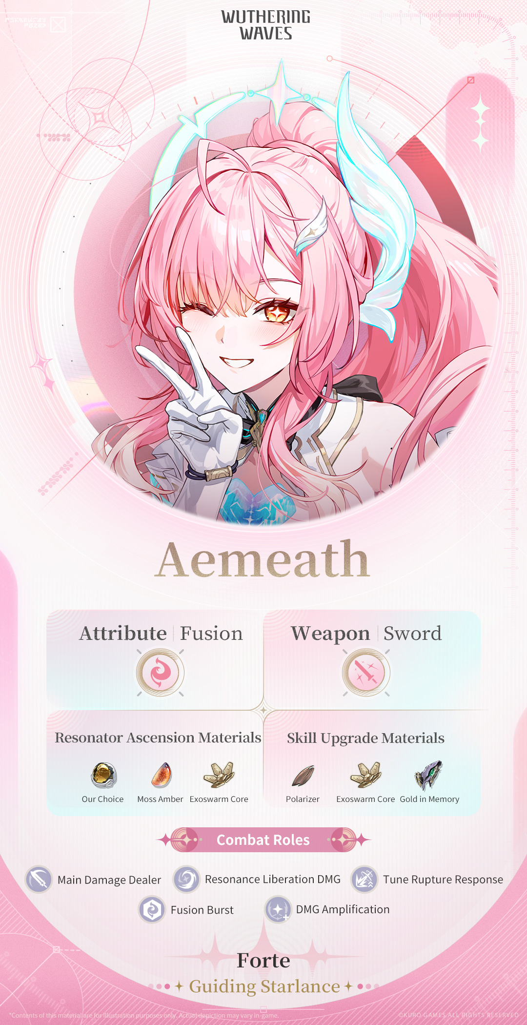Loading Data>>> ✦Aemeath✦ Once an Exostrider Synchronist of Rabelle College, she is now a digital ghost who sings quietly amongst stars. WutheringWaves.gg Articles: 1542 Previous Post Post-Lament Anthropocene: Stars Intertwined | Aemeath Next Post Resonator Review | Howling Flame — Lupa More Articles Resonator Review | Eye of Unraveling — ChisaFebruary 3, 2026 Wuthering Waves Update Content | Version 3.1 “For You Who Walk in Snow” Planned for Release on February 5th (UTC+8)February 2, 2026 Resonator Review | Howling Flame — LupaFebruary 2, 2026 Post-Lament Anthropocene: Stars Intertwined | AemeathJanuary 31, 2026 Post-Lament Anthropocene: Comprehensive Mirror for Historians — ExostriderJanuary 30, 2026 Rover’s Signature Outfit “Perpetual Spark” will become available once Version 3.1 goes live.January 30, 2026 New Area Preview | Roya Frostlands – Frostlands Surface, Coming Soon!January 30, 2026 Wuthering Waves Version 3.1 Update Maintenance NoticeJanuary 29, 2026