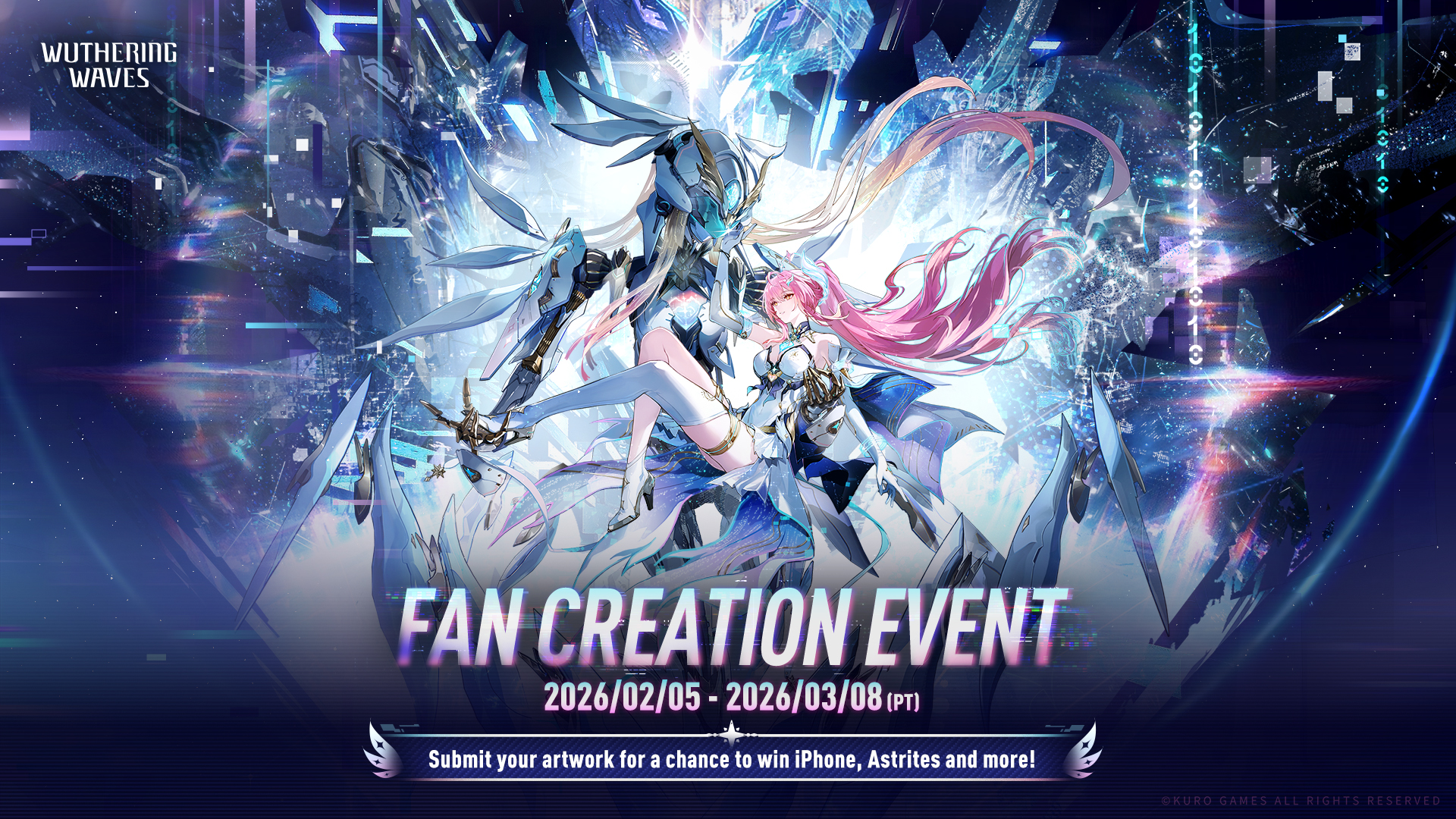 Wuthering Waves Fan Creation Event "For You Who Walk in Snow" is now live! Post your work with hashtags #WutheringWaves and #WuWaFanart on X (Twitter)/Instagram/Facebook and fill out the form for a chance to win iPhone 17 Pro 512GB, Astrites and more! Create your works of boundless imagination to present the world of Wuthering Waves!