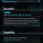 ✦Compensation Eligibility: Create a character and unlock the Mails feature before 2025-04-29 04:00 (UTC+8). The compensation can be claimed before the next version update.