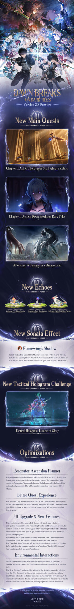 The Preview Special Broadcast has concluded. Take a look back at all these exciting updates: WutheringWaves.gg Articles: 1460 Previous Post [Beyond the Waves: Rinascita] Featured Exploration Event Next Post [Chord Cleansing] Limited-Time Echo Double Drop Event More Articles Notice on the Upgrade and Maintenance of the [Reprise of Tides] Returnee EventDecember 4, 2025 Pusoy Go Download Sparks Dialogue Among GameZone PlayersDecember 2, 2025 Post-Lament Anthropocene: Comprehensive Mirror for Historians—Lahai-RoiNovember 30, 2025 [Tactical Simulacra: Off Tune] Featured Combat EventNovember 26, 2025 V2.8 Wuthering Waves Battle RushNovember 20, 2025 Wuthering Waves Fan Creation Event “To the City Set in Amber” is now live!November 20, 2025 Wuthering Waves Fan Creation Event Winners RevealNovember 20, 2025 Patch Notes for Version 2.8: To the City Set in AmberNovember 20, 2025